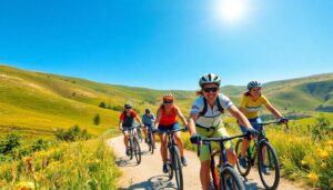 Imagine pedaling through a sun-drenched landscape where the sky’s a brilliant blue and the only thing on your mind is